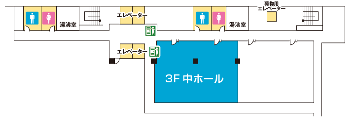 中ホール付近にエレベーターを配置しているため主催者様から来場者様へのスムーズなご案内に大変便利。