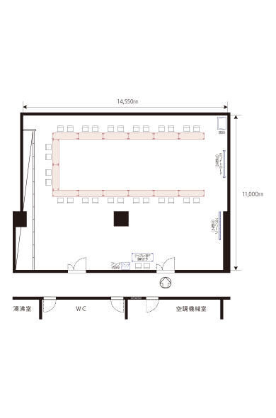| 160m²(48坪) | 30台 | 60脚 | 60名 | 32名 |